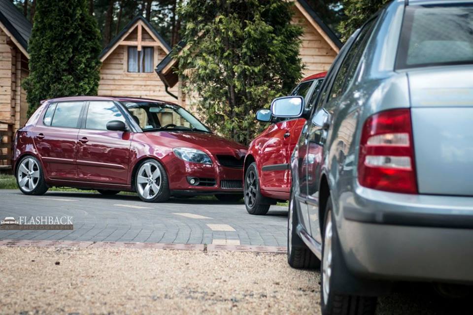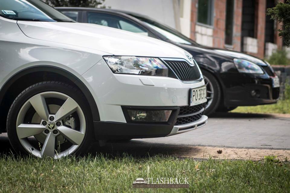 Zbliżała się godzina 8, a to zapowiadało że jeszcze kilka aut do nas dojedzie. Niemal równo z zegarkiem na teren wjechała Škoda Rapid Scoutline prowadzona przez Damiana (skodovy.pl), oraz Škoda Fabia Scoutline prowadzona przez Łukasza.