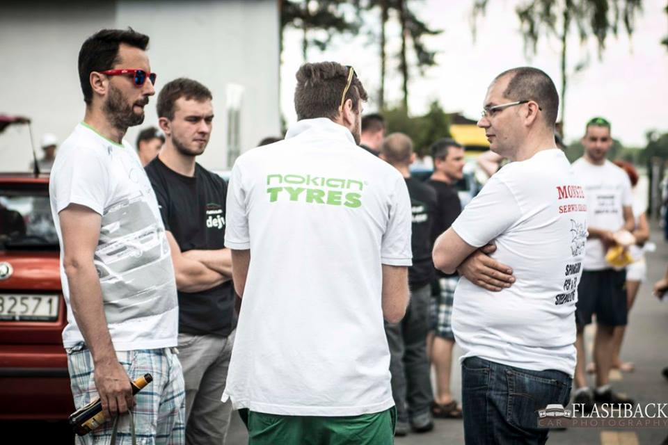 Niemal równolegle do rozmów Skodovego można było porozmawiać z Piotrem z Nokian Tyres o trudnej sztuce oponiarskiej, ale i o samych oponach (min. na co zwrócić uwagę przy ich zakupie). Jako że byliśmy na zlocie motoryzacyjnym, niektórzy wygrali bańki oleju Castrol to musiało dojść w końcu do opon. W tajnym głosowaniu wybraliśmy najbardziej seryjną Fabie należącą do Grześka, który zgarnął komplet nowych opon Nokian wraz z montażem.